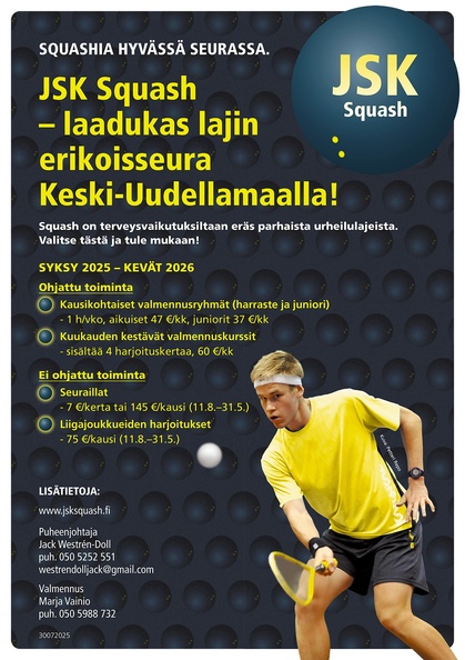 3.8.2025 Aloita squash - tervetuloa mukaan! |