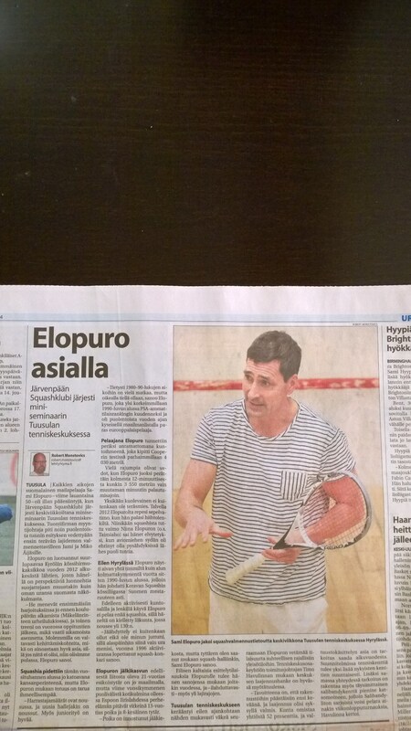 Sami Elopuro sekä "Kyrölän kössihirmukaksikko" Jami & Miko Äijänen olivat illan tähdet JSK:n järjestämässä squashin miniseminaarissa. Tapahtuma toteutettiin yhdessä Tuusulan Tenniskeskuksen ja Tuusulan Tennisseuran kanssa ja paikalle ilmaantui kolmisenkymmentä huippusquashin valmennuksesta kiinnostunutta Miniseminaari alkoi 1/2 tunnin harjoitussessiolla, jonka lajilegenda Sami Elopuro veti yhdessä Jami ja Miko Äijäsen kanssa. Treenit sisälsivät erilaisia harjoitteita, jotka Sami aina välillä keskeytti kertoakseen yleisölle, mitä ja miksi tehdään. Paikalle saapuneet lajifriikit ja muut kiinnostuneet olivat vielä harjoituksia tehtäessä hyvin hiljaa, mutta dialogi Samin kanssa tiivistyi, kun päästiin luento-osuuteen. Esityksessä Sami toi esille asioita, mitä vaaditaan, kun squashpelaaja haluaa tavoitella maailman huippua. Esityksen pääviestin voisi yrittää kiteyttää kolmeen asiaan: 1) urheilijan tahto kehittyä ja tehdä työtä, 2) selkeät tavoitteet niin päivittäisessä tekemisessä kuin isossa kuvassa ja 3) keskittyminen siihen, että urheilija antaa 100% jokaisessa harjoituksessa. Sami toi esityksessään esille mielenkiintoisia ja välillä myös hauskoja kokemuksia ammattilaisurheilijauraltaan: "Toin squashharjoituksiin usein mukaan A4:n, johon oli kirjoitettu 100%. Jokaisen harjoituksen jälkeen minun piti käydä katsomassa tuota paperia ja todeta, olinko tehnyt harjoitukset 100%:sti eli antanut kaikkeni. Tosi hyvä paperi!" "Ei ole olemassa huonoja olosuhteita, on vain erilaisia olosuhteita. Joskus kentällä hikoiltiin 30 C helteessä, joskus esim. Englannin talvessa kentillä saattoi olla vain 12-13 C lämmintä. Silloin pallo pomppi aivan eri tavalla. Tähän kaikkeen pitää pelaajan tottua, sillä kulloisetkin olosuhteet ovat kaikille samat" "Tein Mäkisen Hannun pyynnöstä ensimmäisen harjoitusohjelmani itse, vein sen hänelle tarkastettavaksi, yhdessä sitä katselimme, nauroimme ja teimme sen jälkeen sitten yhdessä kokonaan uuden ohjelman" "Santahaminassa armeijan alkuvaiheessa en aina saanut anomiani harjoitusvapaita. Cooperin-testissä juoksin komppanian parhaan ajan ja ohitin huippu-urheilijataustaisen ammattisotilaan kierroksella. Sen jälkeen harjoitusvapaat pyörivät paljon paremmin" "Kilpailutilanne on kaikille samanlainen. Myös maailman huippupelaajat jännittävät otteluita. Asuin erään ammattilaisturnauksen aikana samassa hotellihuoneessa silloisen maailman ykkösen, Uuden-Seelannin Ross Normanin kanssa. Muuten lunki kaveri muuttui pari tuntia ennen matsia todelliseksi hermokimpuksi ja sinkoili hotellihuoneessa edestakaisin räpläten mailaansa koko ajan. Silloin tajusin, että ihan samanlaisia kavereita nämä maailman ykköset ovat kuin me muutkin"