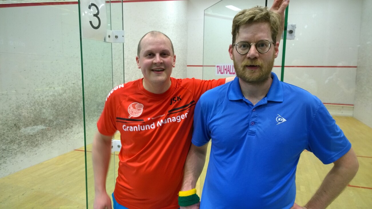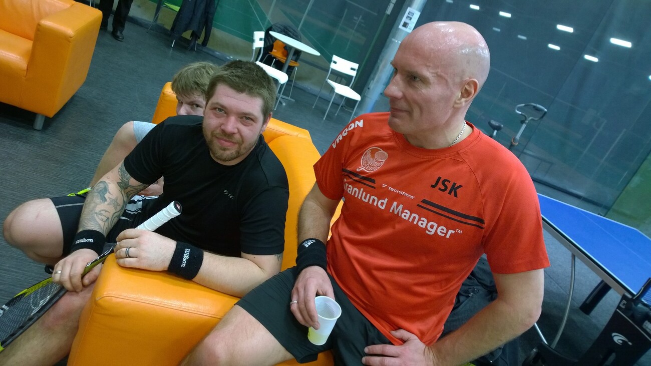 LahtiSq:n Riku Salminen (kuvassa oikealla) teki paluun squashkentille ja totesi, että squash on kuningaslaji :-)