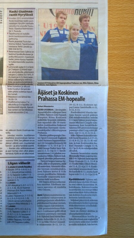Lehdistö/mediat: Turun Sanomat (05.04): http://www.ts.fi/urheilu/754787/Suomen+nuorille+squashin+EMjoukkuehopeaa Uutisvuoksi (05.04): http://www.uutisvuoksi.fi/Online/2015/04/05/Suomen%20nuorille%20EM-hopeaa%20squashissa/2015518864230/16 Lisää lehtiuutisia alla liitetiedostoissa.