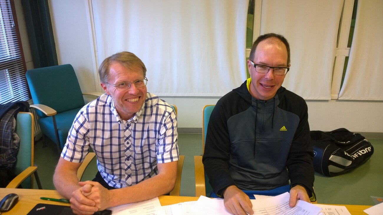 JSK:n sääntömääräinen vuosikokous pidettiin torstaina 10.09 Tuusulan Tenniskeskuksessa. Vuosikokouksessa käytiin läpi sääntömääräiset asiat ja seuralle valittiin hallitus kaudelle 2015-16. Puheenjohtajana jatkaa Jack Westrén-Doll (kuvassa vasemmalla). Jack otti pj:n nuijan vastaan jo viime kaudella ja luottamus tähän pitkän linjan kössimieheen on vahva. Niinpä jatkopesti tuli ilman keskusteluja. Hallituksen kokoonpano on muutenkin sama kuin edellisellä kaudella, eli siinä jatkavat Raimo Yliranta (vara-pj), Jouni Nykänen, Ilkka Virtanen, Joel Kirsimaa, Eemeli Hautanen ja Heikki Ruotanen (sihteeri, kuvassa oikealla). Hallituksessa on työnjako ja jäsenillä on eri vastuualueita seuraavasti: JSK:n tilit ja rahat pysyvät tästä eteenpäinkin hyvässä järjestyksessä, sillä rahastonhoitajana jatkaa Kati Porthan. Hallituksen jäsenten yhteystiedot löydät täältä:http://www.jsksquash.fi/seura/johtokunta/ Liitteet