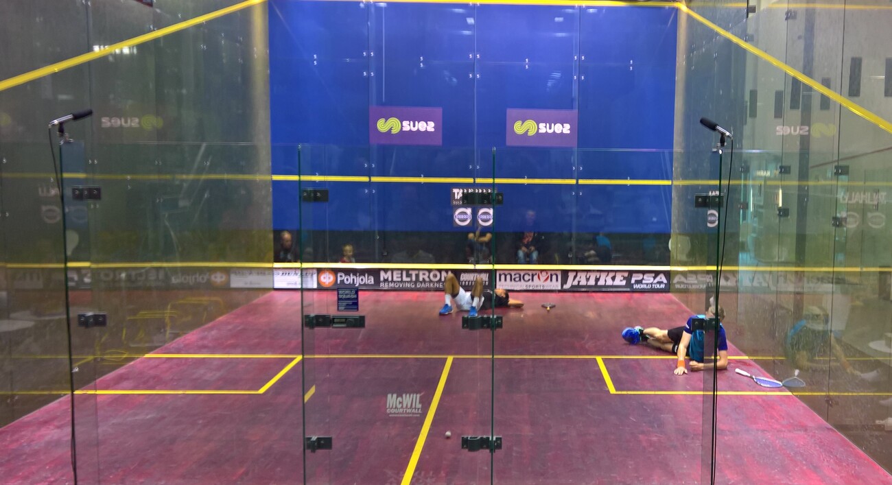 Jami Äijänen pelasi elämänsä turnauksen. Karsintaottelut olivat vielä vireen hakemista, mutta pääsarjassa Jami oli kingi. Huikeassa loppuottelussa Jami kukisti Espanjan Iker Pajaresin erin 3-2. Matkalla voittajaksi Jami Äijänen kukisti puolivälierässä turnauksen 2.-sijoitetun Australian Matthew Hopkinin 3-1 ja finaalissa turnauksen 1.-sijoitetun Iker Pajaresin jännittävien vaiheiden jälkeen 3-2. Pajares on tällä hetkellä ammattilaisten PSA-rankinglistan nro 98, joten Jamille (PSA 233) espanjalainen oli todella kova päänahka. Loppuottelu oli hienoa squashia. Ensimmäisessä erässä Jami oli vielä vähän tunnusteleva ja hävisikin sen selvästi. Toisessa erässä näimme sitä Jamia, johon olimme pääsarjan aikaisemmissa otteluissa tottuneet. Toinen erä menikin Jamille, kolmas Pajaresille ja neljäs taas Jamille. Ottelun tiimellykseen mahtui myös miltei totaalinen pelaajien tyrmäys, kun kilpakumppanit törmäsivät toisiinsa etukenttäpallossa (ks. kuva). Kovin kauaa he eivät lattialla kuitenkaan maanneet, kun seuraava palloralli jo taas alkoi. Jami pelasi monipuolisesti, rytmitti peliä kovilla ja pehmeillä lyönneillä ja onnistui ratkaisemaan niin heti syötönvastauksessa kuin pitkän pallorallin päätteeksi. Boast-valikoimaakin oli, kun välillä Jami halusi vain liikuttaa vastustajaansa ja pian sen jälkeen tuli murhaava kahden seinän lyönti. Viidettä erää ei unohda kukaan paikan päällä olleista. Erityisen mieleenpainuva oli pitkä ja raastava pallo tilanteessa 6-2. Molemmat pelaajat hakivat vastustajan sijoituksia uskomattomista paikoista. Pajares syöksyi kyseisen pallorallin aikana 3 kertaa, mutta tämäkään ei auttanut, sillä ratkaisevan lyönnin Jami tappoi etunurkkaan. Tähän palloon katkesi espanjalaisen selkäranka ja loppu olikin Jamin loisteliasta näytöstä. Ottelun viimeisen pallon Jami ratkaisi näyttävällä volley-lyönnillä takanurkkaan (ks kuva). Ottelu oli huikea näytös ja hyvää mainosta squashille. Talihallissa on hienot puitteet ammattilaisturnauksille. Challenger-turnauksilla on tärkeä merkitys nuorten suomalaispelaajien kehityksessä. Lämpimät onnittelut Jami loistavasta turnausvoitosta! |