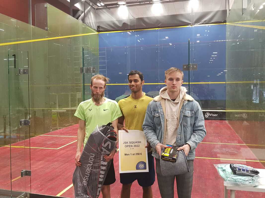 Kilpailun tulokset: Naiset: mukana Suomen huiput ja itseään haastavat 1. Emilia Soini 2. Riina Koskinen 3. Sari Niemistö Miehet 1: Erittäin laadukas loppuottelu ja hienoja pelejä Emilialta ja Riinalta. 1. Mahesh Mangaonkar 2. Matias Tuomi 3. Samuli Niskala Miehet 2: Yrittämisen iloa 1. Simo Toimela 2. Andy Nelson 3. Jack Westren-Doll Arpajaisissa onnetar suosi seuraavia: Pääpalkinto, Milwaukee akkuporakone: Tatu Lahdenperä Karakal Joel Makin squash-maila: Helena Saxberg Milwaukee suojalasit: T. Virtanen Kiitokset arpajaisyhteistyökumppaneillemme Alppilan Sähkö / Joel Kirsimaa ja Karakal / Ville Karsikas.